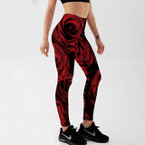 Women's Leggings Red Roses Printed Workout Pants