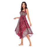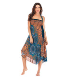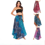Women Rayon Skirt - Retro Florals Pleated Halter Skirt Beach Vacation Skirt
