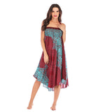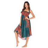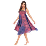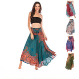 Women Rayon Skirt - Retro Floral Pleated Strap Skirt Beach Vacation Skirt