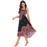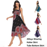 Women Rayon Skirt - Sunflower Pleated Strapless Skirt Beach Vacation Skirt