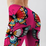 YogaHarem Women'Leggings Butterflies Rose Red Workout Fitness Pant