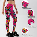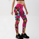 YogaHarem Women's Leggings Butterflies Printed Pink Workout Pant