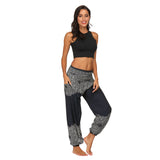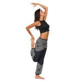 Women's straight Loose Harem Pant - Black flowers bloomers