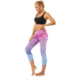 High Rise Violet to Blue Mandala Capris | A Small Pocket on Waistband